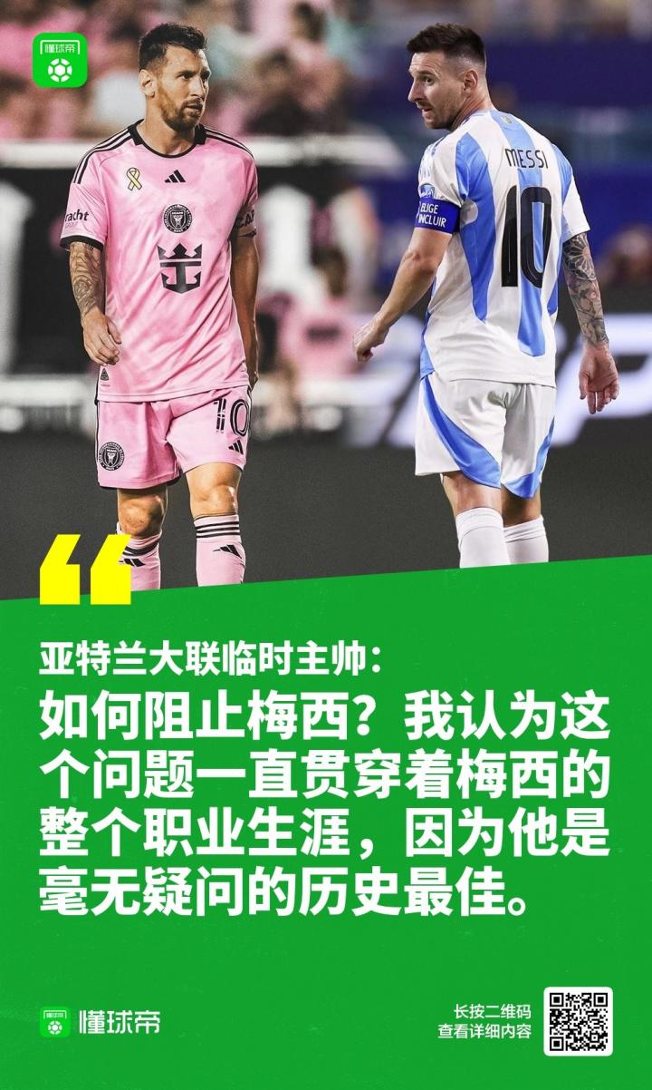 亚特兰大联临时主帅:几乎没有办法阻止梅西,他是历史最佳