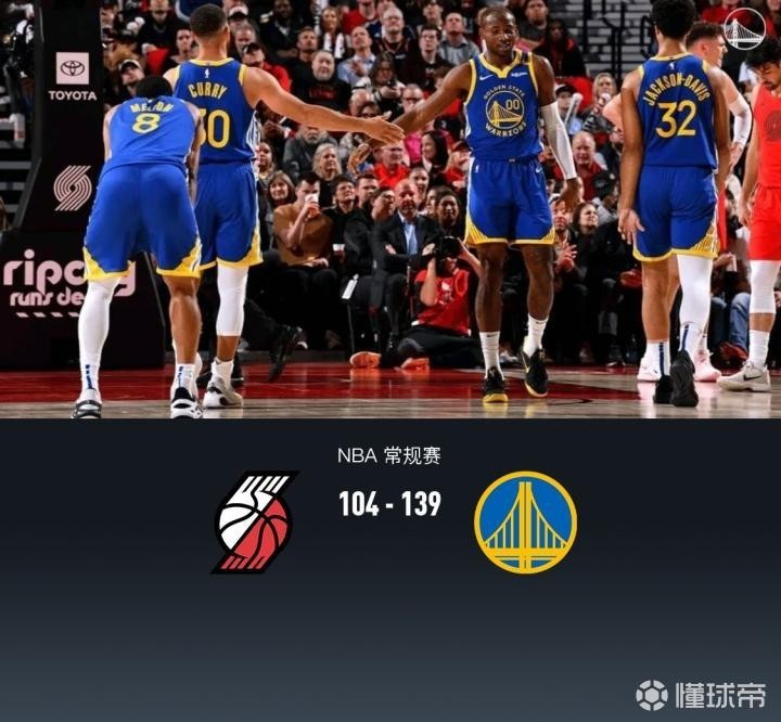 勇士七人上双139-104开拓者迎开门红,库里三节打卡17+9+10