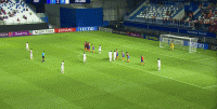 第85分钟,钱杰给任意球直接射门,皮球被对手扑出