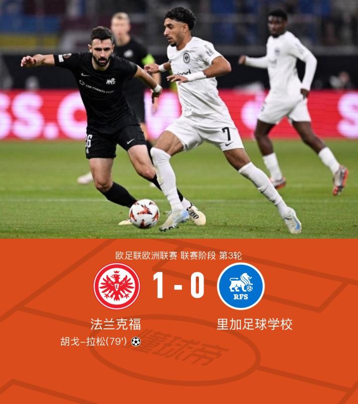 在欧足联欧洲联赛的较量中,法兰克福迎战里加足球学校。比赛中,法兰克福的马尔穆什送出精彩助攻,胡戈-拉松抓住机会,成功将球送入对方球门。凭借这一进球,法兰克福以1-0战胜对手,取得了比赛的胜利。