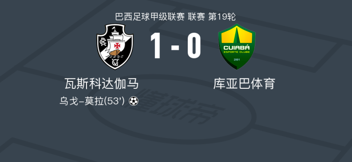 瓦斯科达伽马1-0库亚巴体育,乌戈-莫拉一击制胜