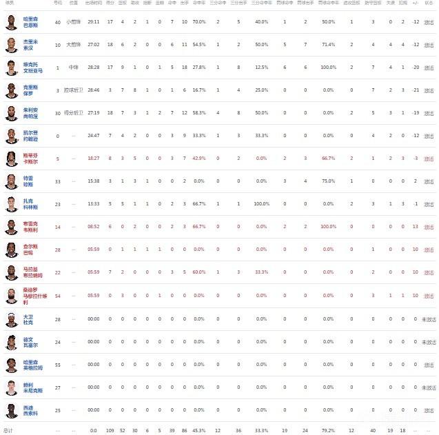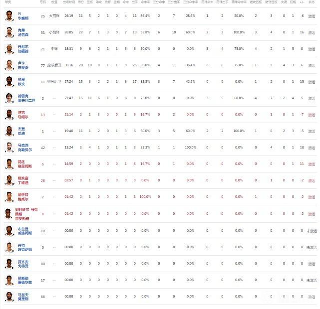 球员全场数据