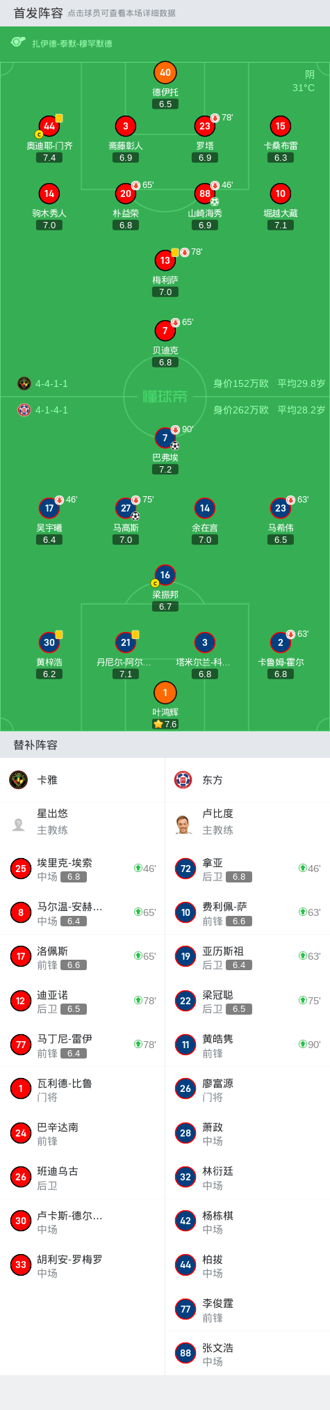 东方2-1卡雅,巴弗埃建功,马高斯破门