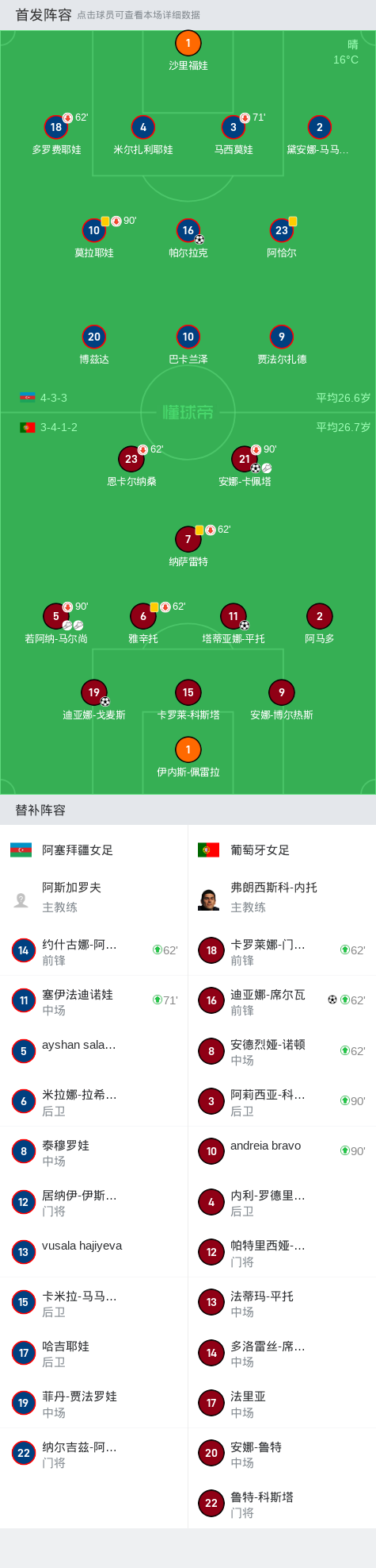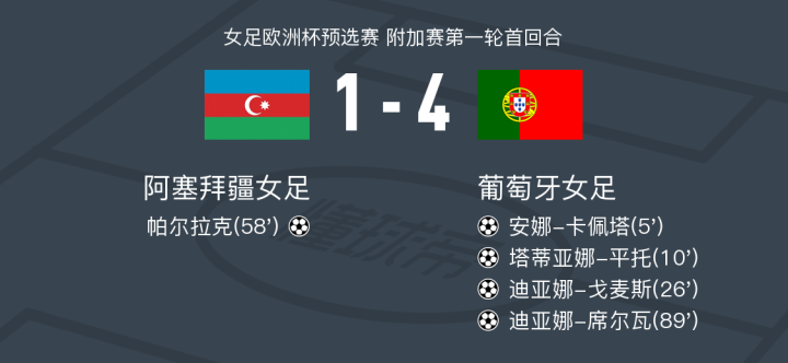 葡萄牙女足4-1大胜阿塞拜疆女足,迪亚娜-席尔瓦、迪亚娜-戈麦斯破门