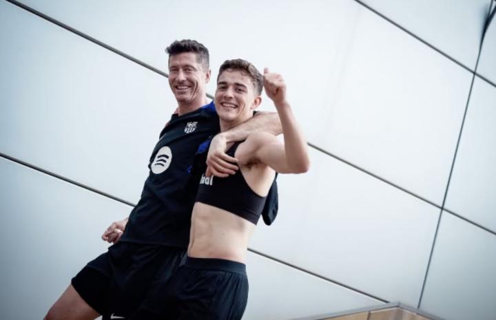 西班牙国家德比将在本周末打响,加维今日在社交媒体上晒出了与莱万多夫斯基的合照。