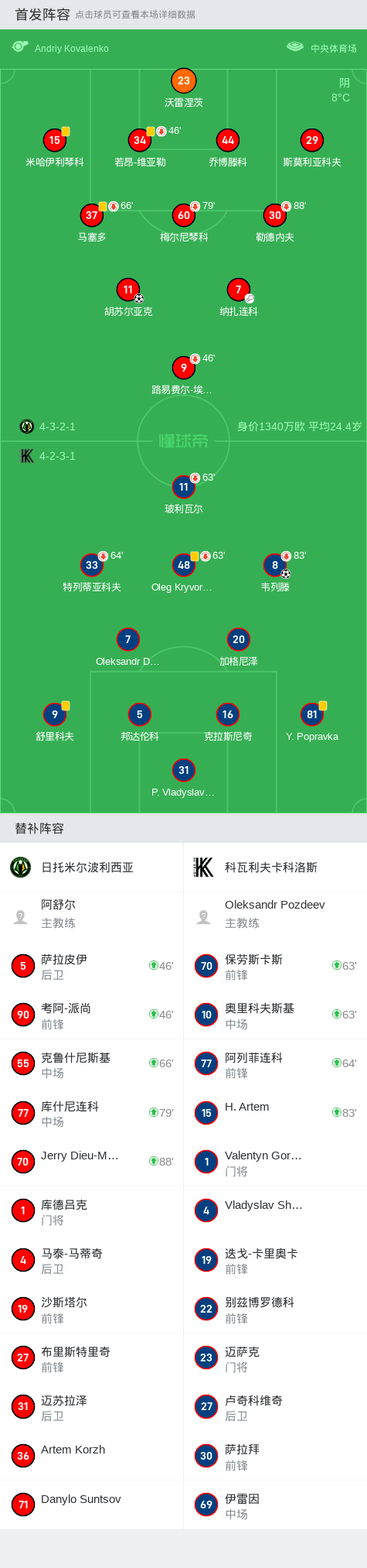第55分钟,日托米尔波利西亚球员纳扎连科助攻胡苏尔亚克打入一球。