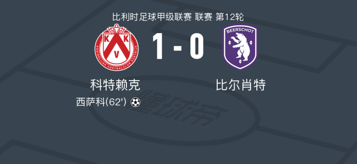 在比利时足球甲级联赛第12轮的较量中,科特赖克坐镇主场迎战比尔肖特。比赛中,科特赖克的阿卜杜勒卡哈尔-卡德里送出精妙助攻,西萨科成功破门,为球队取得领先。凭借这一进球,科特赖克以1-0小胜对手,成功捍卫了主场荣耀。