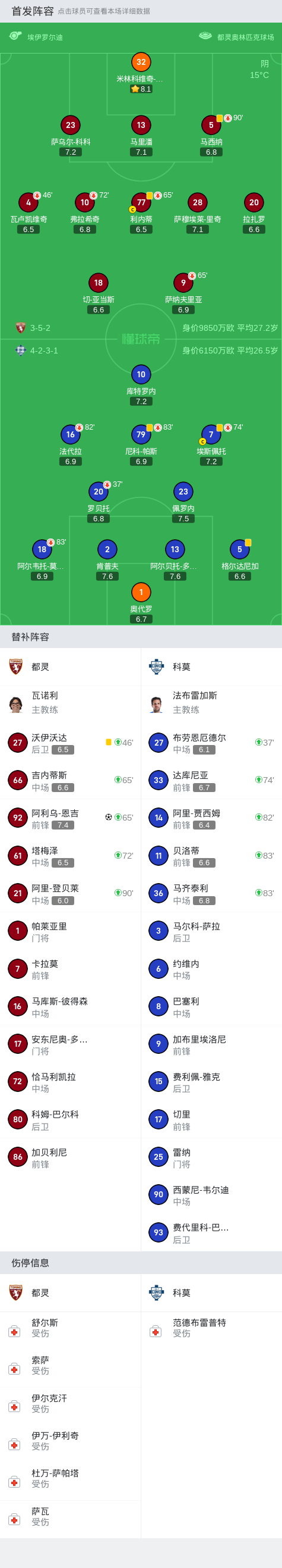 都灵1-0科莫,阿利乌-恩吉打入个人赛季首球战报bot @懂球帝2024-10-26 04:43在意大利足球顶级联赛第9轮的比赛中,都灵坐镇主场迎战科莫。比赛中,阿利乌-恩吉为都灵打入关键一球,帮助球队取得领先。最终,都灵以1比0战胜科莫,成功捍卫了主场荣耀。点击查看本场比赛详细数据>>点击查看意甲完整积分榜>>精彩瞬间第75分钟,都灵球员阿利乌-恩吉打入一球。 球队阵容 技术统计 展开更多