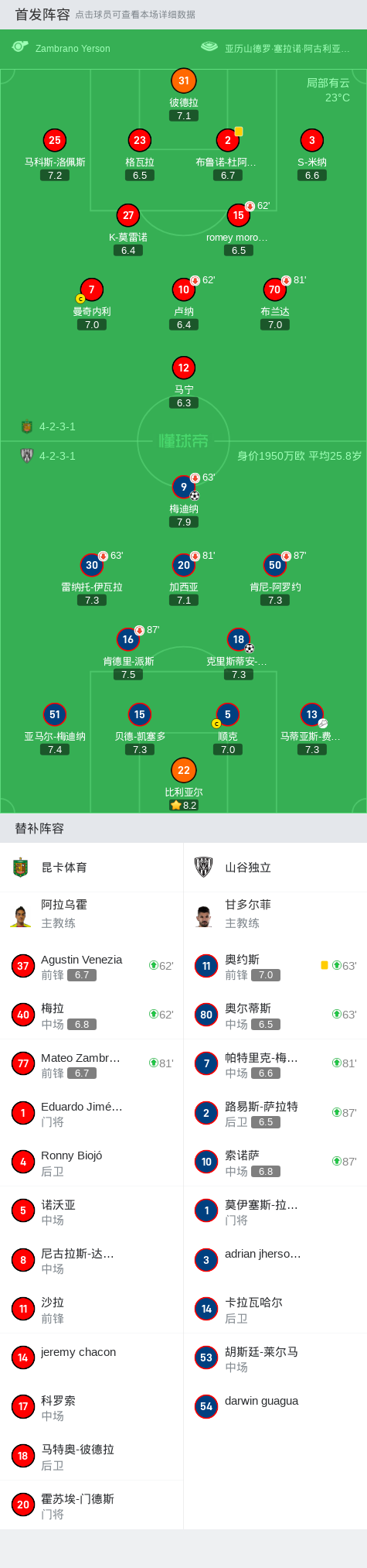 山谷独立2-0昆卡体育,梅迪纳破门,克里斯蒂安-萨巴拉锁定胜局