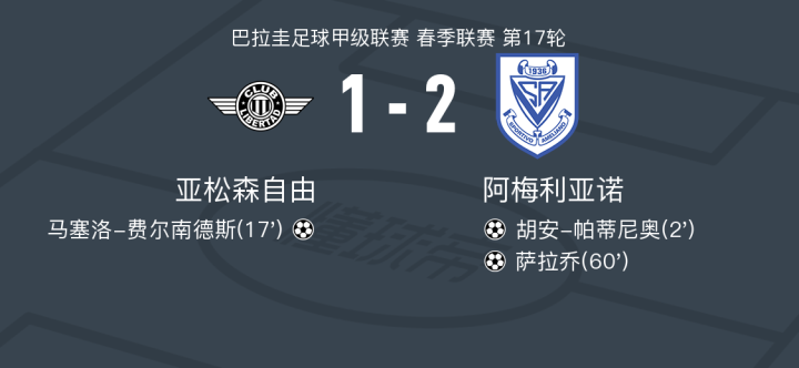 阿梅利亚诺2-1亚松森自由,萨拉乔建功,胡安-帕蒂尼奥破门
