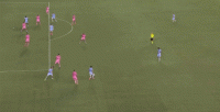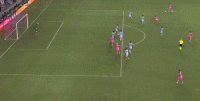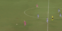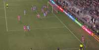 第27分钟,迈阿密角球开出,埃克托-马丁内斯头球蹭射击中立柱