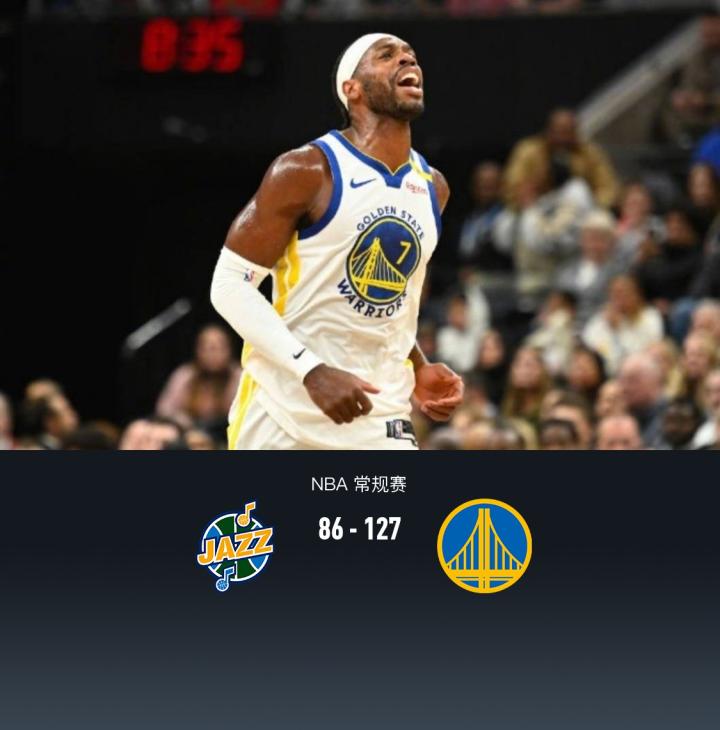 第四节,勇士提前换下主力进入练兵时间,但勇士替补阵容依旧发挥出色将分差持续拉大,全场结束,最终勇士127-86爵士。