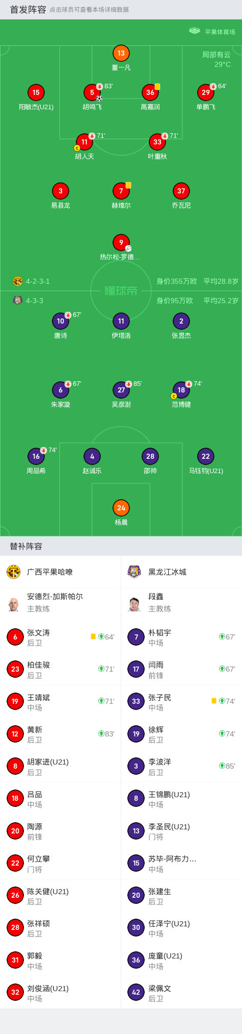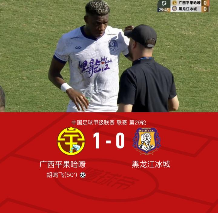广西平果哈嘹1-0黑龙江冰城,胡鸣飞制胜,唐诗造险