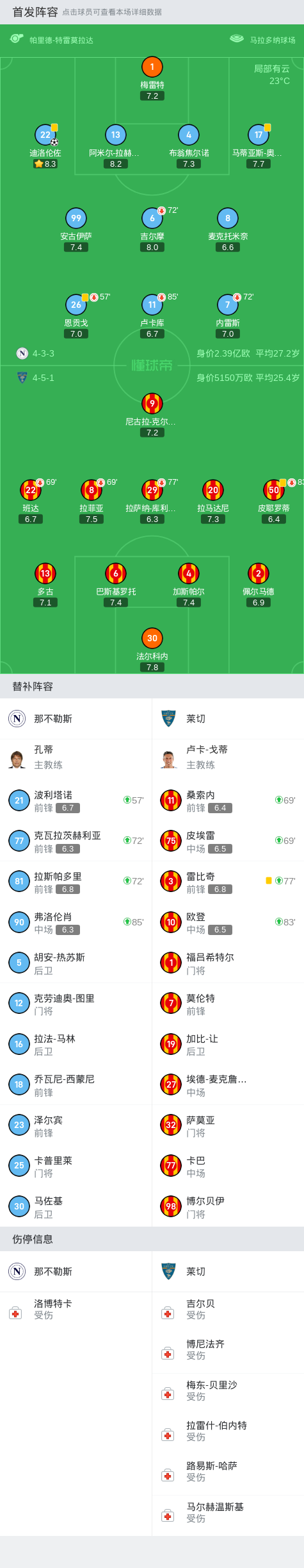 第72分钟,克瓦拉茨赫利亚、拉斯帕多里登场,吉尔摩、内雷斯被换下