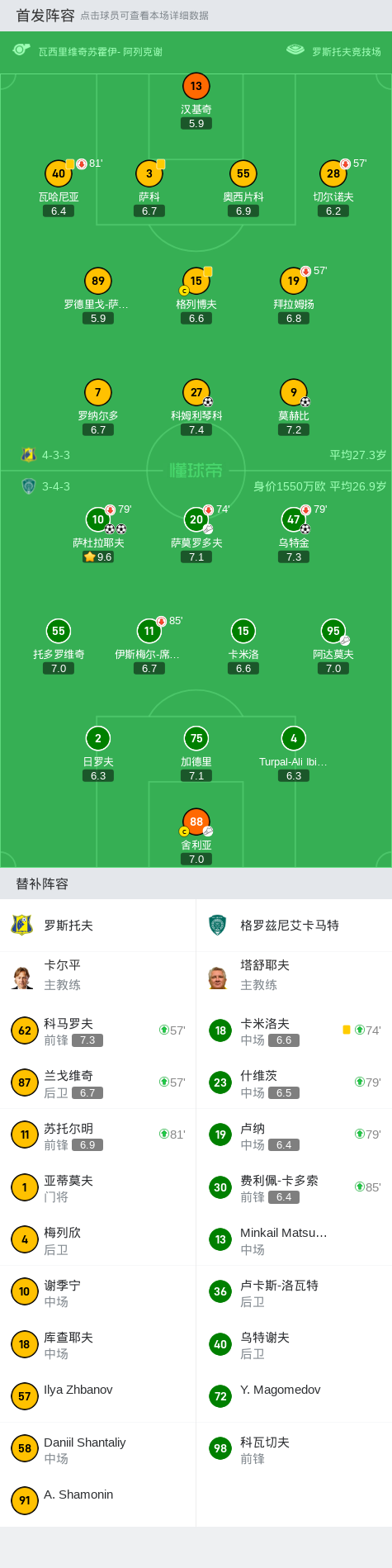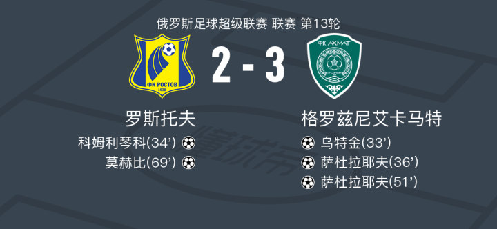 格罗兹尼特里克3-2罗斯托夫,萨杜拉耶夫梅开二度,乌特金破门
