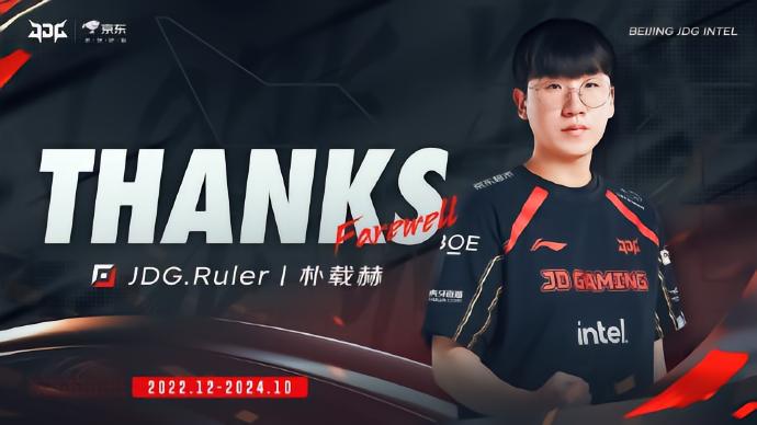 经选手与俱乐部双方友好协商,在充分尊重选手个人意愿的前提下,即日起JDG京东电子竞技俱乐部下路选手朴载赫(ID:Ruler)正式断开连接。