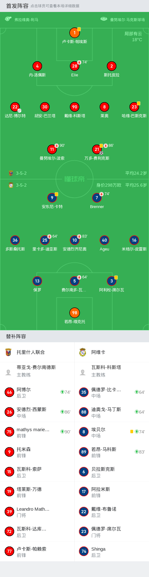 托里什人联合1-0阿维卡,万多-费利克斯制胜