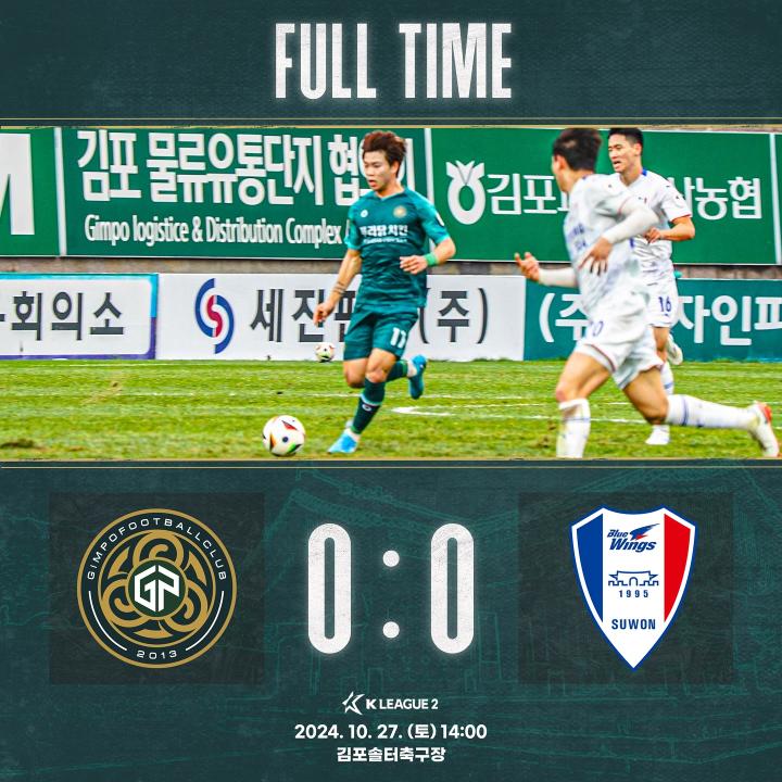 另外两场比赛中,金浦FC和水原三星蓝翼以0-0战平,这个平局让双方的排名没有变化,同时和前面本轮轮空的釜山分数彻底追平,将季后赛的悬念延续。