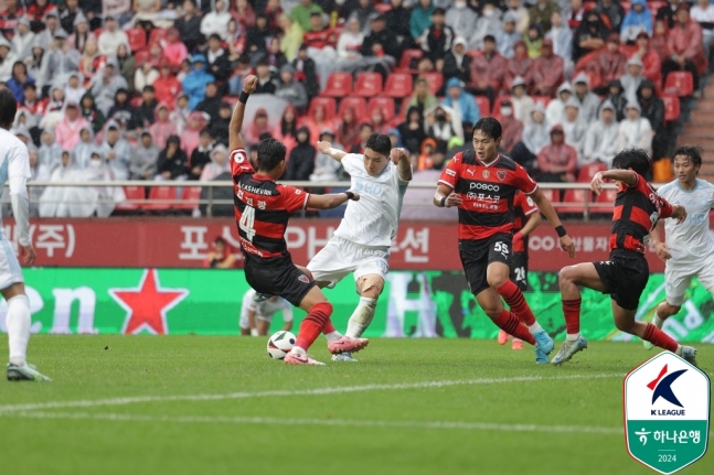 少打一人的浦项后防线几分钟后就出现失误,朱玟奎门前乱战中抽射破门,2-0!蔚山客场领先。上一次,浦项曾经在最后时刻连续进球,最终将比分只缩小到输一球,但这一次,他们无力回天,只能望着对手赛后在自己主场庆祝的身影。