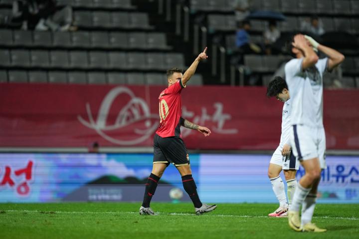我们再把目光转向K2赛场。在韩国的首尔,一场焦点大战上演,首尔衣恋主场迎来了忠南牙山FC的挑战,由于衣恋在积分榜只差对手2分,因此主场只要击败对手,就会升入第二位。但首尔衣恋踢得却非常谨慎,而这也给了对手直接的杀死比赛机会,上半场对手利用一次中路内传禁区的抽射以及在禁区外的远射先下两城。尽管衣恋全线出击,但最终还是仅仅在第80分钟依靠角球扳回一球,衣恋1-2输掉比赛后,落后对手5分,同时落后领头羊8分,夺冠已经无望。至于忠南牙山FC,他们胜利后积分达到了57分,距离领头羊安养只有3分差距,看到了夺冠的希望。