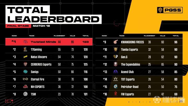 TWIS总分133卫冕PGS5冠军,17Gaming以5分之差遗憾获得亚军
