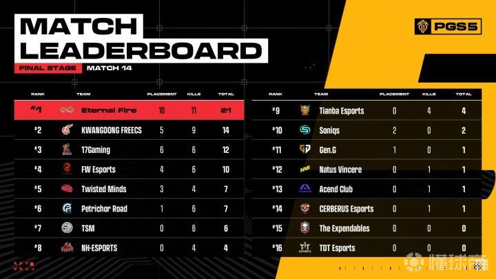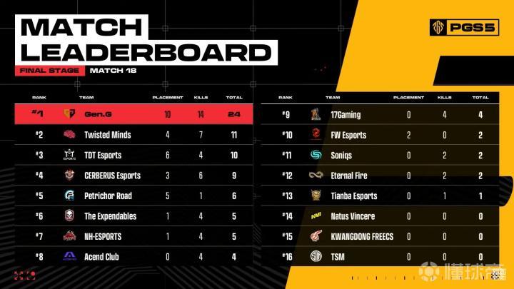 本局PCL再次包揽前三,17Gaming拿到11分,距离榜首仅4分!