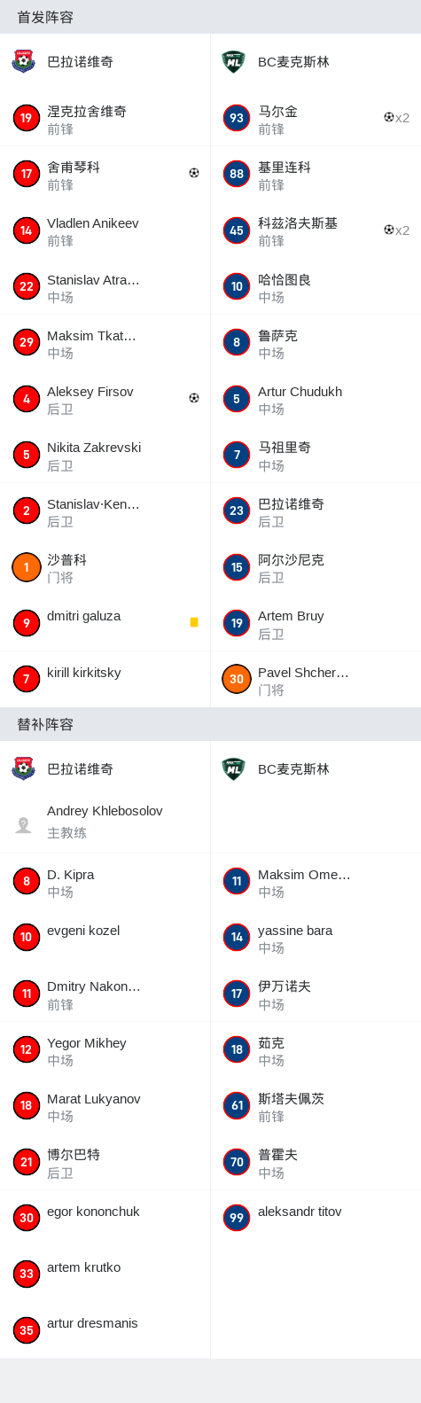 第65分钟,巴拉诺维奇球员Aleksey Firsov打入一球。