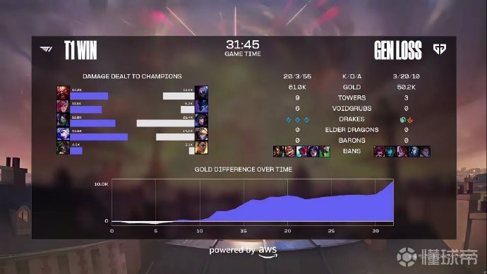 第30分钟,T1野区开团,打出0换4后一波结束比赛,20-3。