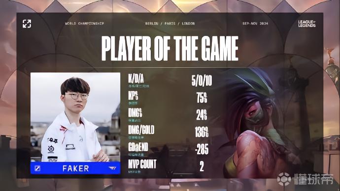 北京时间10月20日20:00,英雄联盟2024全球总决淘汰赛,今天的比赛是T1 vs GEN,第三局T1以20-3战胜GEN拿下赛点。