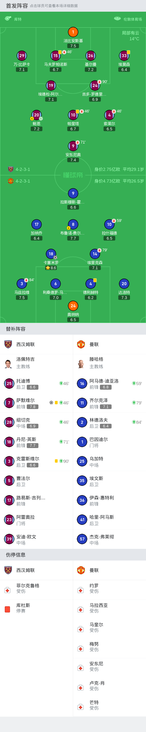 第74分钟,曼联后场倒脚失误,萨默维尔破门,西汉姆联1-0领先!