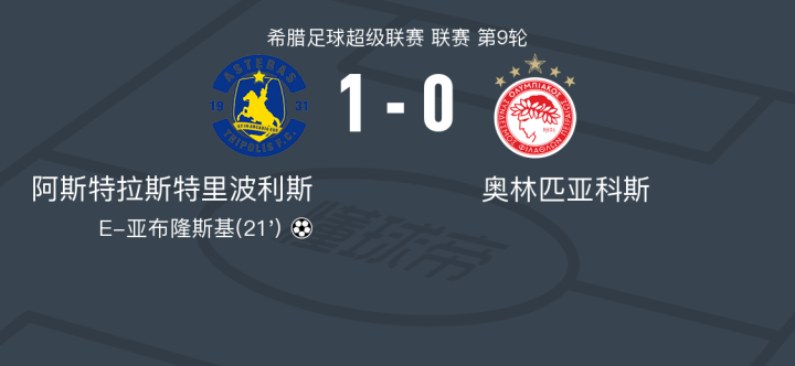 阿斯特拉斯特里波利斯1-0奥林匹亚科斯,E-亚布隆斯基一锤定音
