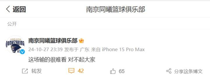 40分惨败广东,同曦男篮发文:这场输得很难看,对不起大家南京伦敦体育场小杨 @懂球帝2024-10-28 01:52北京时间10月27日,CBA常规赛,南京同曦男篮88-128不敌广东东阳光。赛后,同曦男篮俱乐部官方发文致歉:这场输得很难看,对不起大家。此役,广东男篮这边7人数据上双,三个外援合砍61分。而南京头排苏酒这边,除了林葳得到19分,其他人的状态都比较低迷,最终以40分惨败广东男篮。展开更多