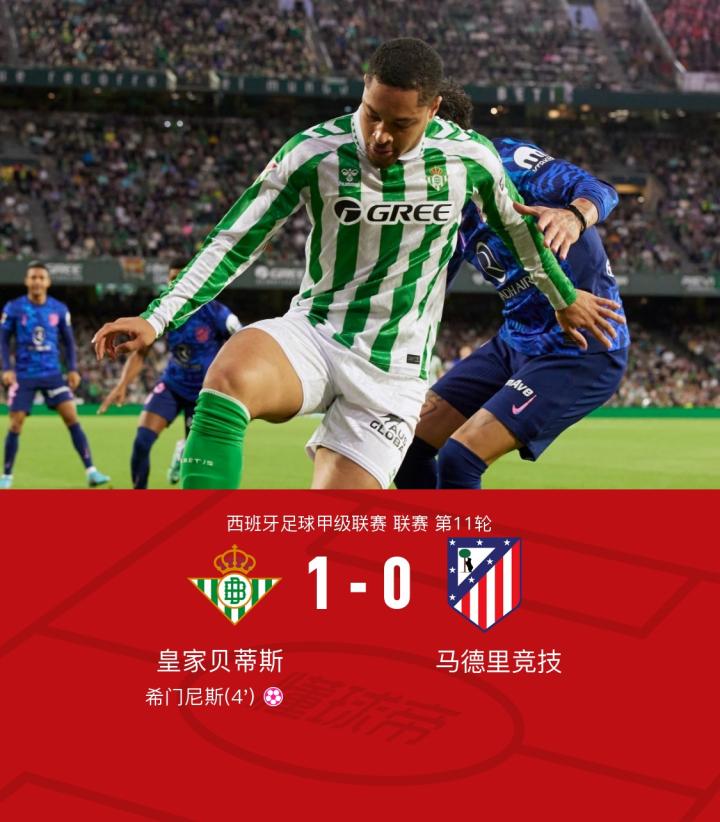 马竞客场0-1贝蒂斯遭赛季联赛首败,阿布德造希门尼斯乌龙