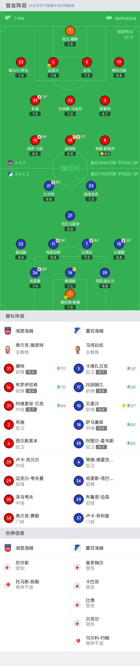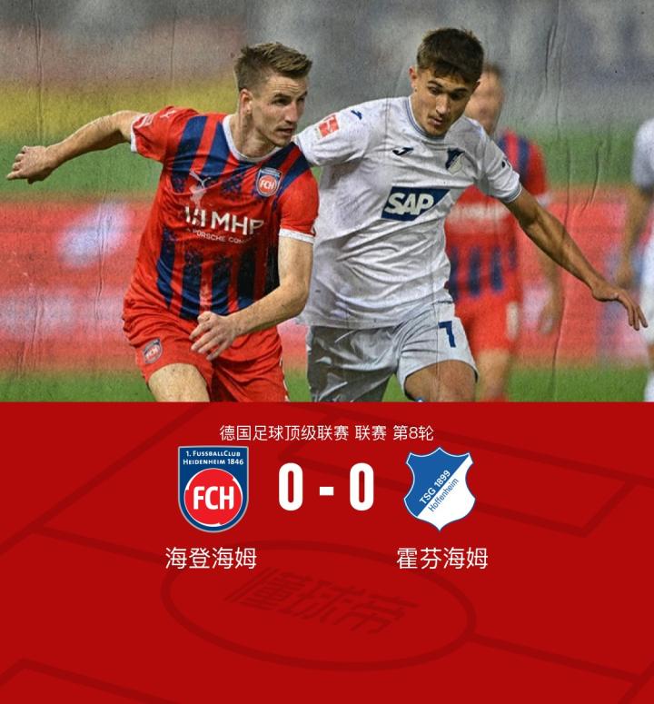 海登海姆0-0霍芬海姆,双方鏖战90分钟未分胜负战报bot @懂球帝2024-10-28 04:23在德国足球顶级联赛第8轮的较量中,海登海姆坐镇主场迎战霍芬海姆。经过激烈的对抗,双方均未能攻破对方球门,比赛以0-0的比分收场。两队在场上展现了顽强的防守和不懈的拼搏精神,尽管创造了一些得分机会,但都未能转化为进球。最终,海登海姆与霍芬海姆各取一分,平分秋色。点击查看本场比赛详细数据>>点击查看德甲完整积分榜>> 球队阵容 技术统计 展开更多