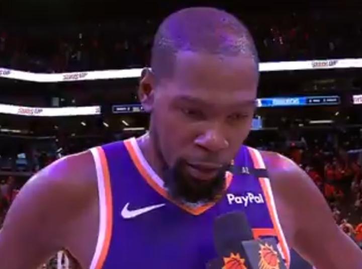 赛后,杜兰特被记者问及这一话题,他说道:“这让我想起了帮助过我的许多人,他们和我一起去健身房,鼓励我,给我发信息,告诉我在比赛里的糟糕表现。你知道,他们抽出时间来看我比赛,他们喜欢来看我打球。他们对我的职业生涯投入了不少精力,这一切都是为了他们。所以我很高兴能和这群人一起在这么多人面前打球。而且,你知道,我仍有很多未尽的使命。”