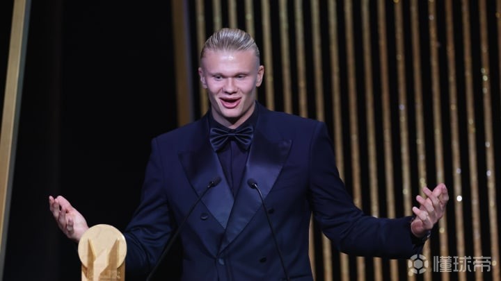 分列二、三名的分别是跟随曼城夺得三冠王的哈兰德和当时效力巴黎、获得世界杯亚军的姆巴佩。