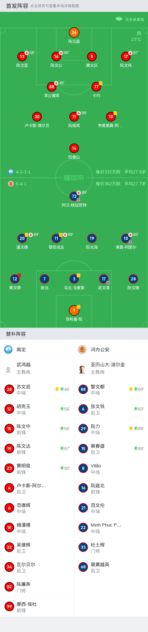 上半场补时第3分钟,河内公安球员武文清打入一球。
