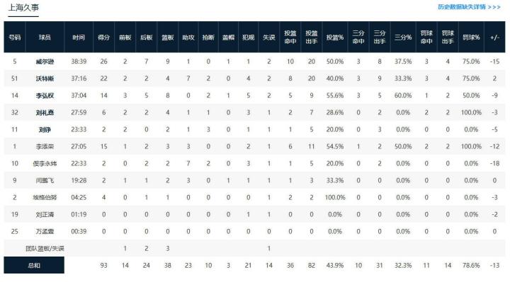 上海久事DJ-威尔逊26分9板1助1帽,特雷蒙特-沃特斯22分4板7助2断,李添荣15分3板3助。