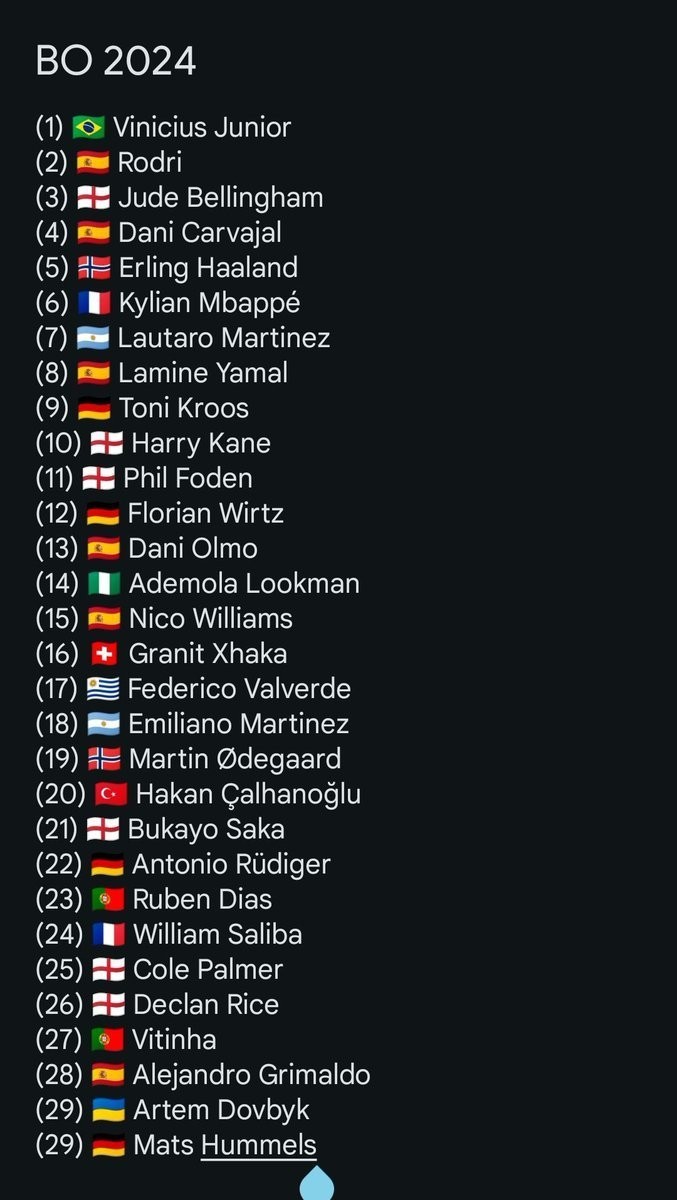 不过就在金球奖公布排名后,一份网传的金球奖最终排名名单出现了,而且这份名单从两位并列29位的开始,一直到公布到第11位,再到颁奖典礼期间公布到第5位时,始终与官方排名完全一致。而这份名单的金球奖得主是维尼修斯!难道还有反转?