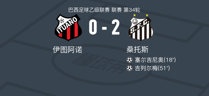 桑托斯2-0伊图阿诺,塞尔吉尼奥破门,吉列尔梅锁定胜局