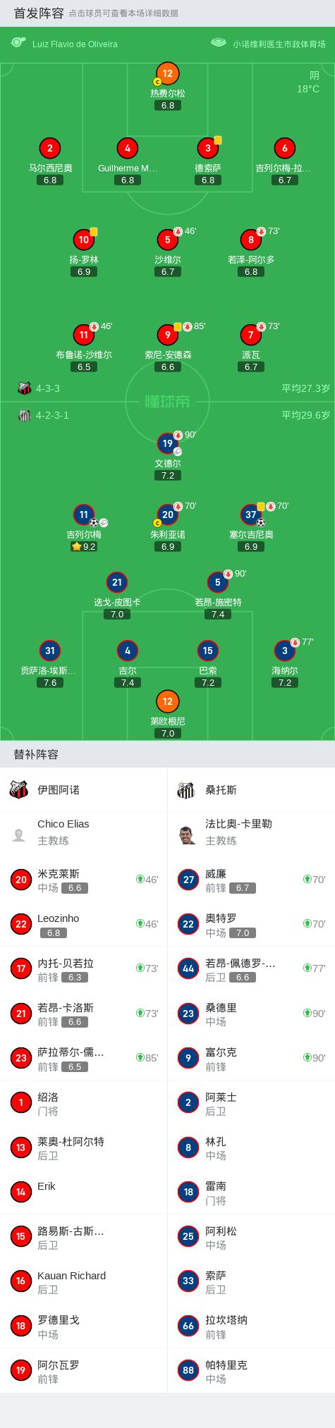 第18分钟,桑托斯球员吉列尔梅助攻塞尔吉尼奥打入一球。