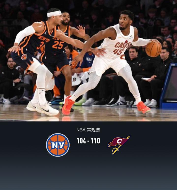 NBA战报:骑士110-104尼克斯取4连胜,加兰34+3,米切尔25分