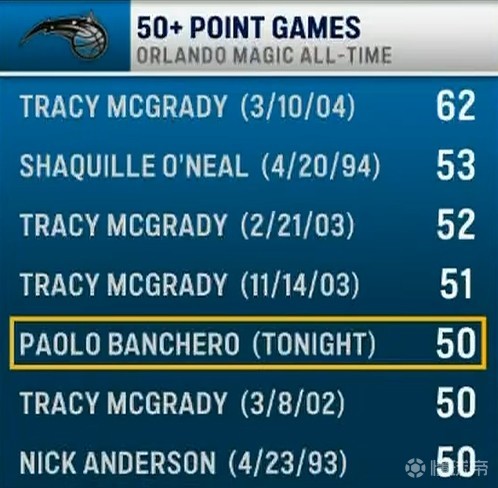生涯之夜,班凯罗砍下50分成为魔术队队史单场得分第五