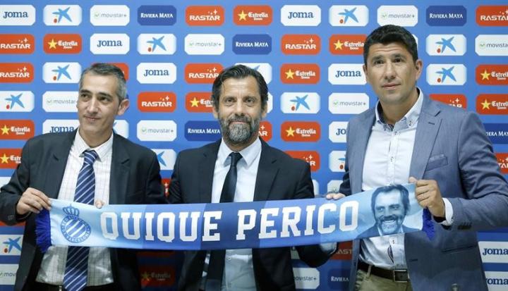 西班牙人主帅弗洛雷斯在上任发布会上就举着写有自己名字"Quique"和鹦鹉"perico"的围巾