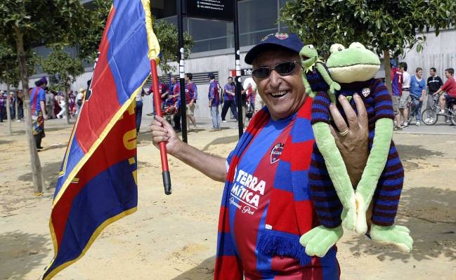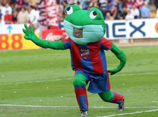 莱万特的外号“granotas”在瓦伦西亚当地的含义是青蛙,西班牙语为“rana”。嗯,可想而知他们的吉祥物自然也就是一只青蛙了。不过这个外号是咋来的呢?在西班牙内战过后的1939年,莱万特足球俱乐部和体操足球俱乐部(Gimnástico FC)合并成为了莱万特联合体育(Levante Unión Deportiva,缩写为Levante UD)。前者有一套出色的阵容,但他们没有踢球的地方,而后者水平高的球员很少,但他们拥有一座历史性的巴列霍球场。天时地利人和,这两支球队就干脆合并了。