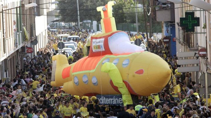 时光拨回到1967年,比利亚雷亚尔升入到了第三级别联赛,整支球队充满希望和憧憬。在那个年代,披头士乐队风靡全球,Los Mustang的翻唱版本在西班牙获得了巨大成功。在比利亚雷亚尔升级的那一天,整座城市都在播放“Submarino Amarillo”这首歌庆祝。恰好比利亚雷亚尔的球衣颜色是黄色,并且他们像潜水艇一样每个赛季处于升降机,所以用这首歌来形容他们是再合适不过的了。另外加迪斯俱乐部的外号也叫做“黄色潜水艇”,起源雷同。