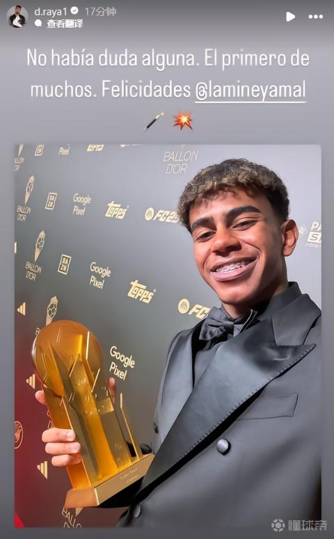 拉亚祝贺罗德里和亚马尔获奖:实至名归,恭喜你们