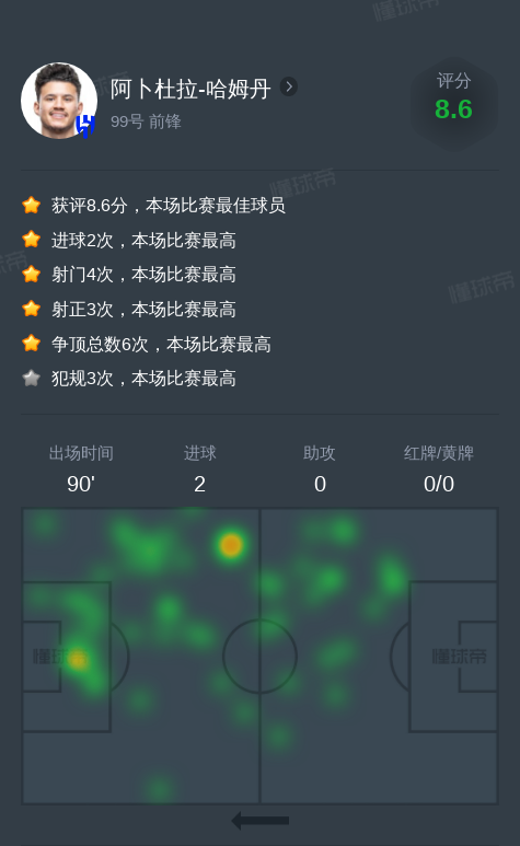 阿卜杜拉-哈姆丹vs塔伊全场数据:2进球,1次关键传球