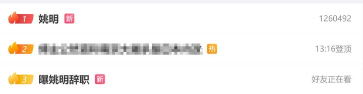 重磅炸弹,“姚明”和“曝姚明辞职”登上微博热搜头条和第三位