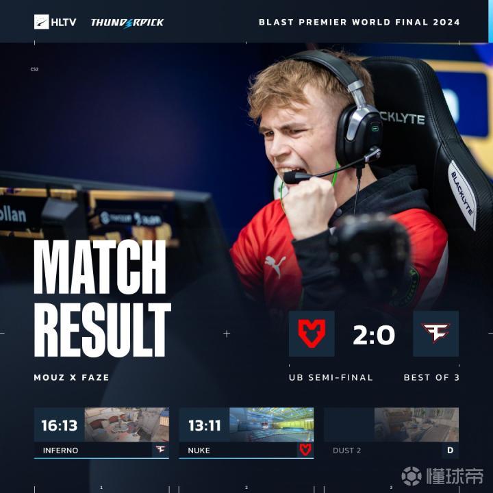 BLAST世决:MOUZ 2-0力克FaZe,后者将与NAVI上演生死局大战